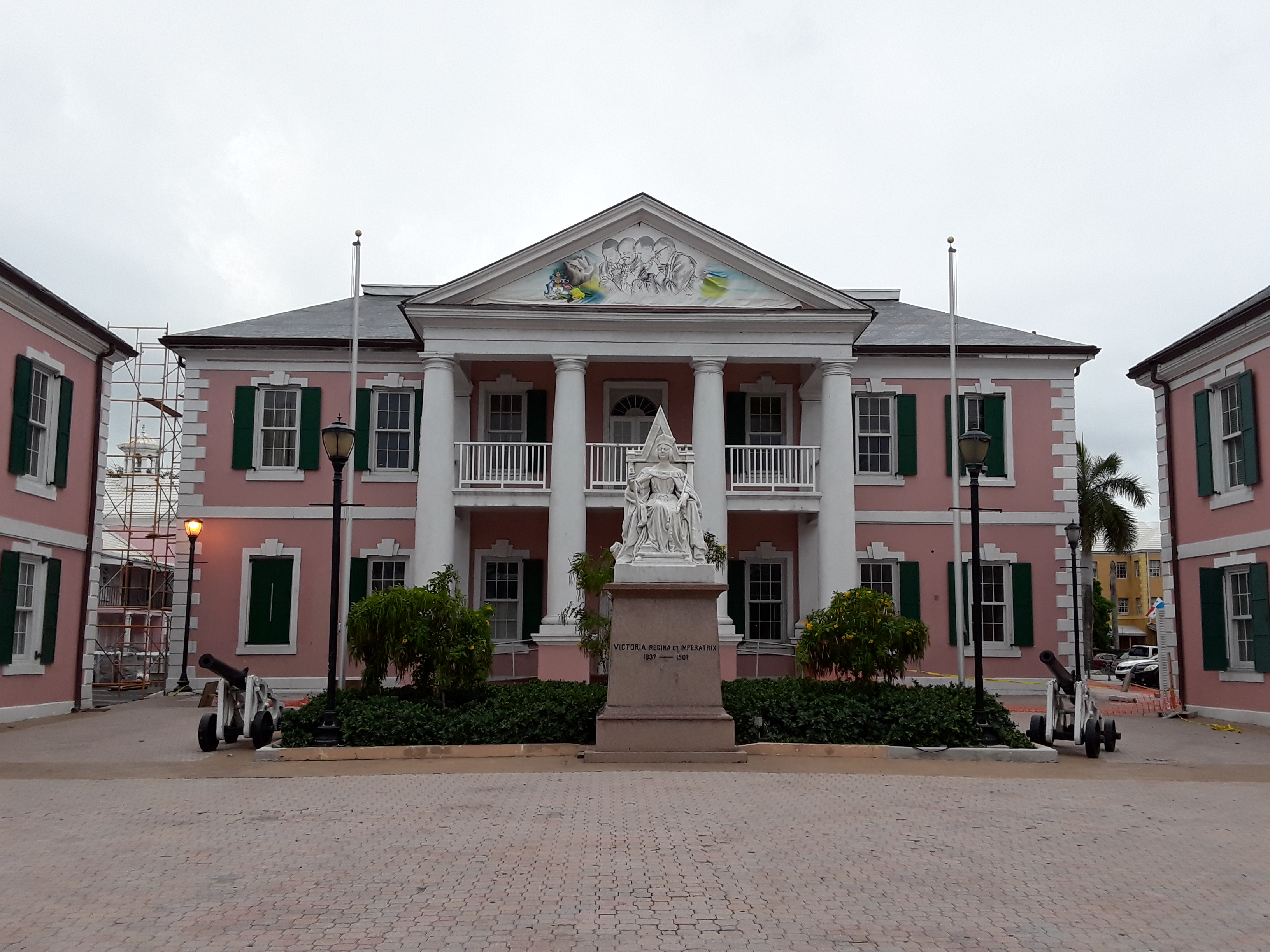 It retains many of its typical pastel-colored British colonial buildings, like the pink-hued Government House.
