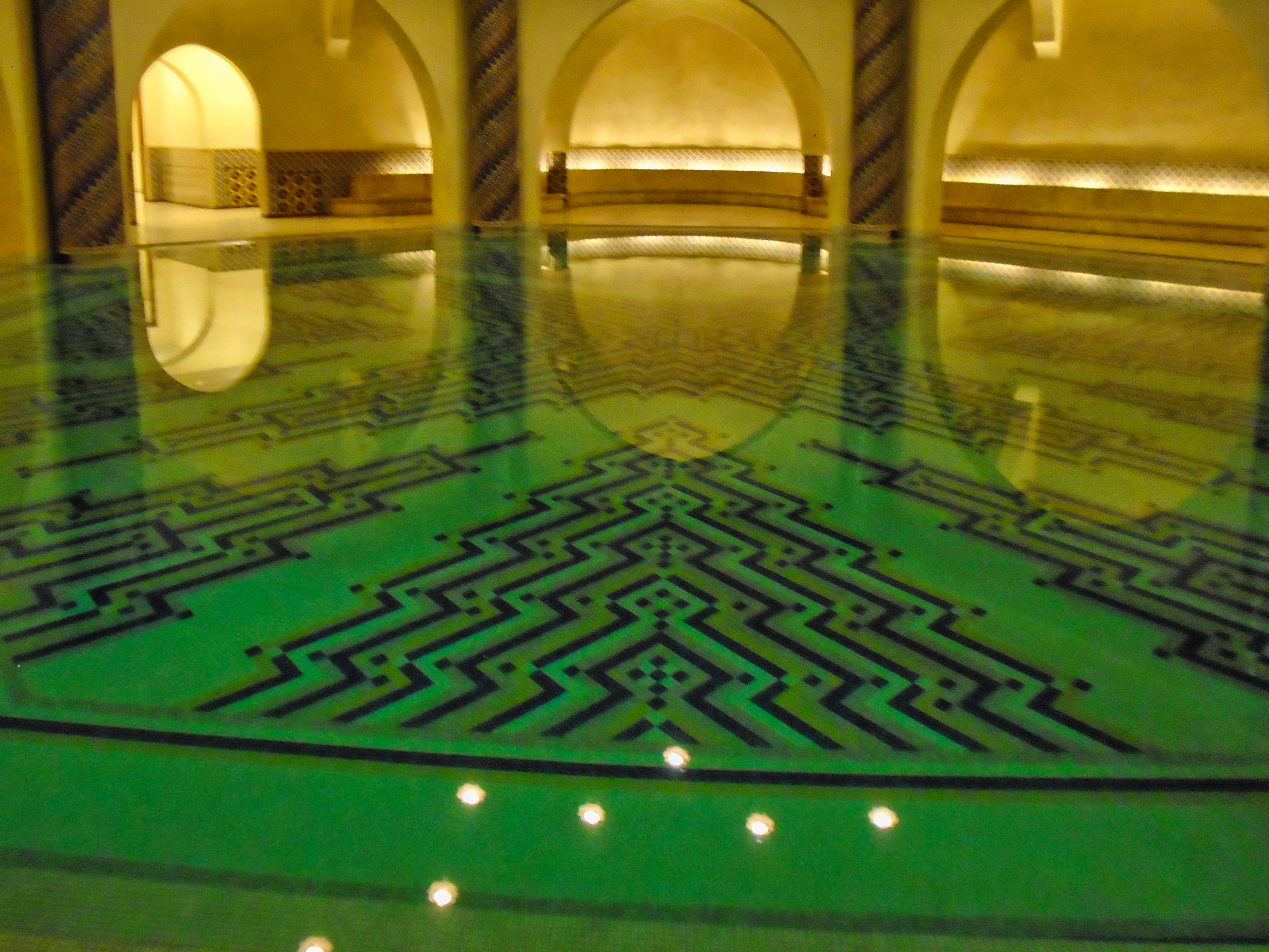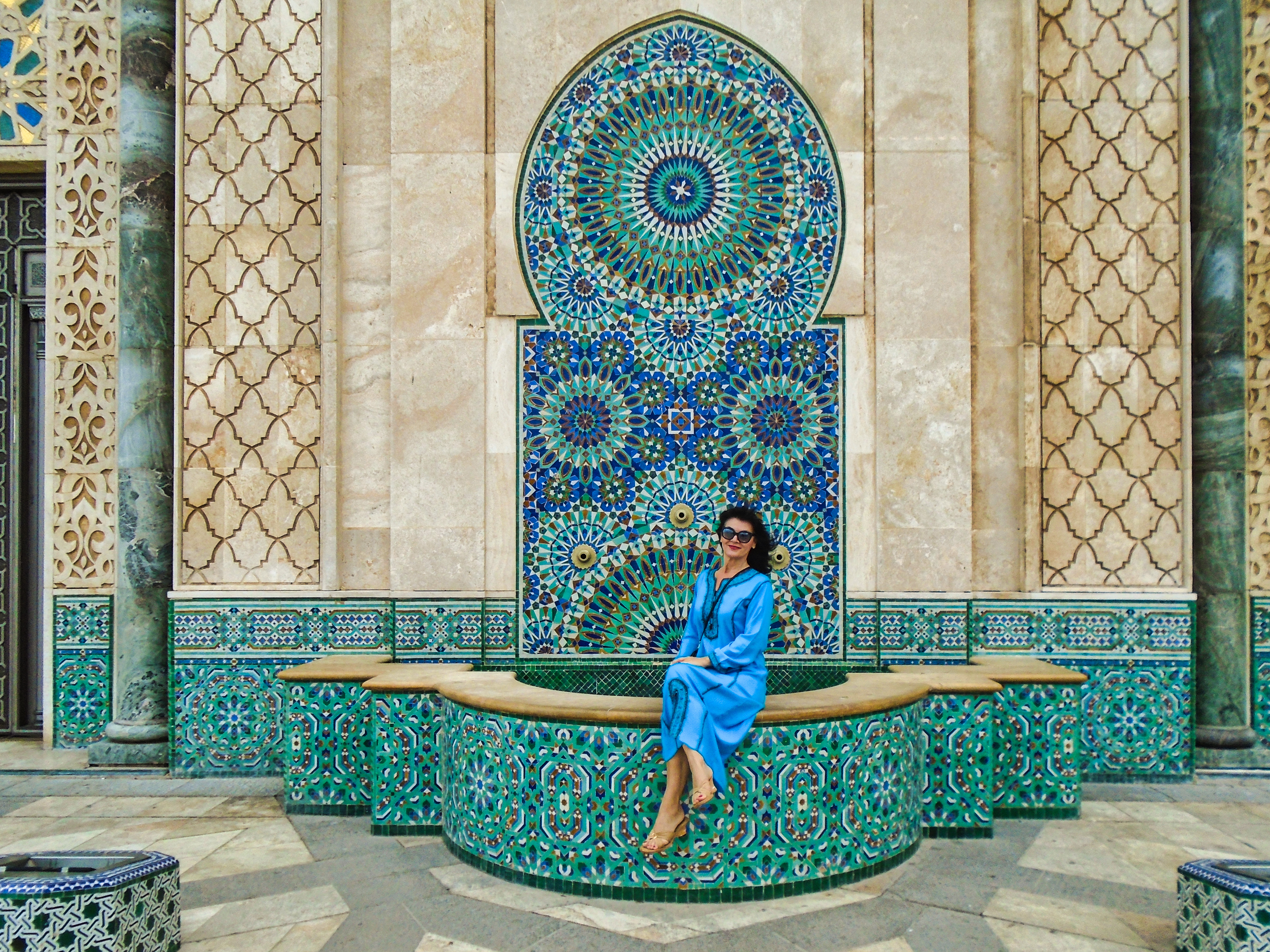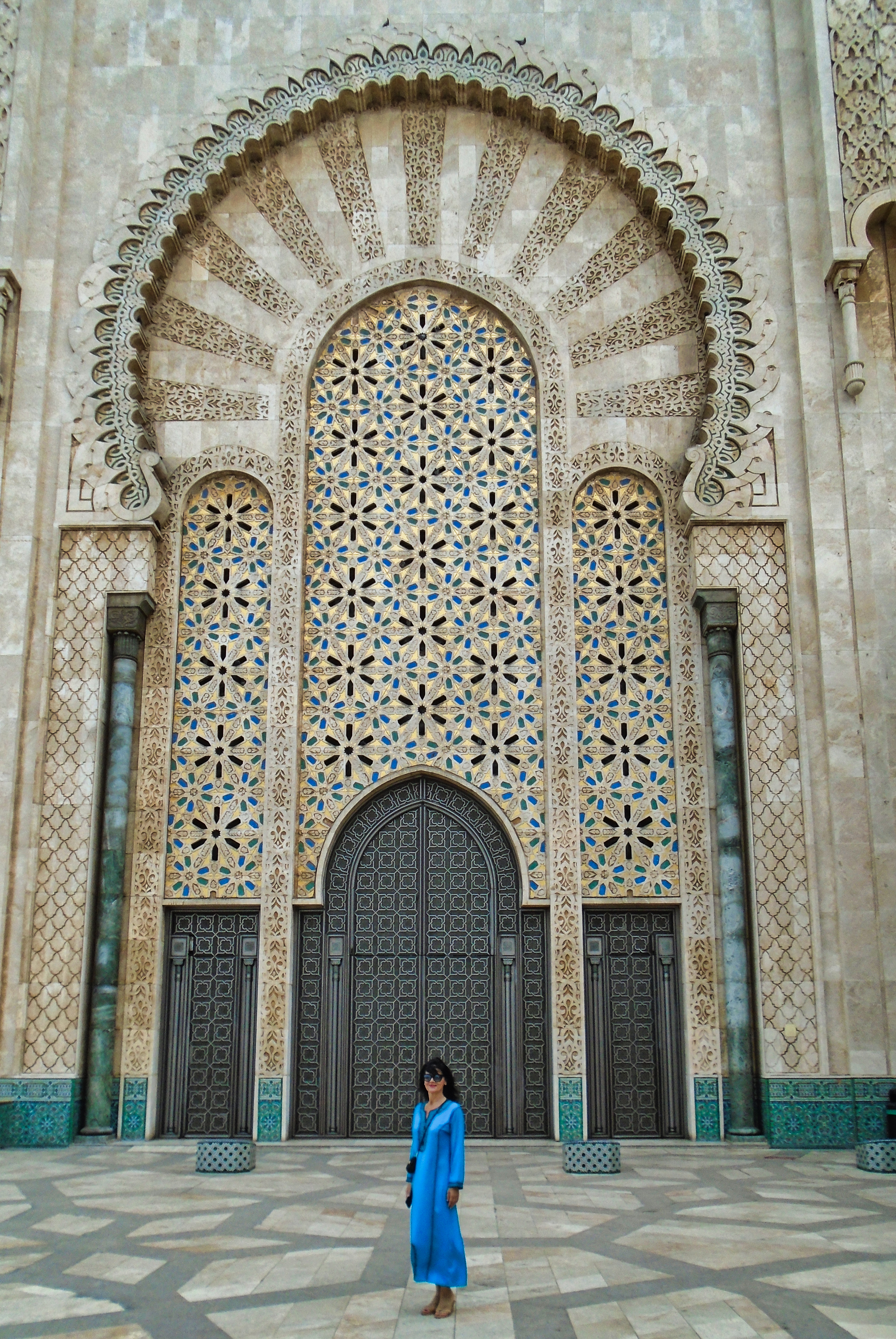 The Hassan II Mosque is the largest functioning mosque in Africa and is the 7th largest in the world. Its minaret is the world’s second tallest minaret at 210 metres. Completed in 1993, it was designed by Michel Pinseau under the guidance of King Hassan II and built by Moroccan artisans from all over the kingdom. The minaret is 60 stories high topped by a laser, the light from which is directed towards Mecca. The mosque stands on a promontory looking out to the Atlantic Ocean; worshippers can pray over the sea but there is no glass floor looking into the sea. The walls are of hand-crafted marble and the roof is retractable. A maximum of 105,000 worshippers can gather together for prayer: 25,000 inside the mosque hall and another 80,000 on the mosque’s outside ground. This stately mosque, a fine example of pure Moroccan architecture, is the only one in the city that non-Muslims may visit. As my wife had bought their typical dress as an suvenir, we didn’t have any problem to visit it. Furthermore, for a small amount of money we had a guide who took us to a different places of this building. Here are some of our recordings...