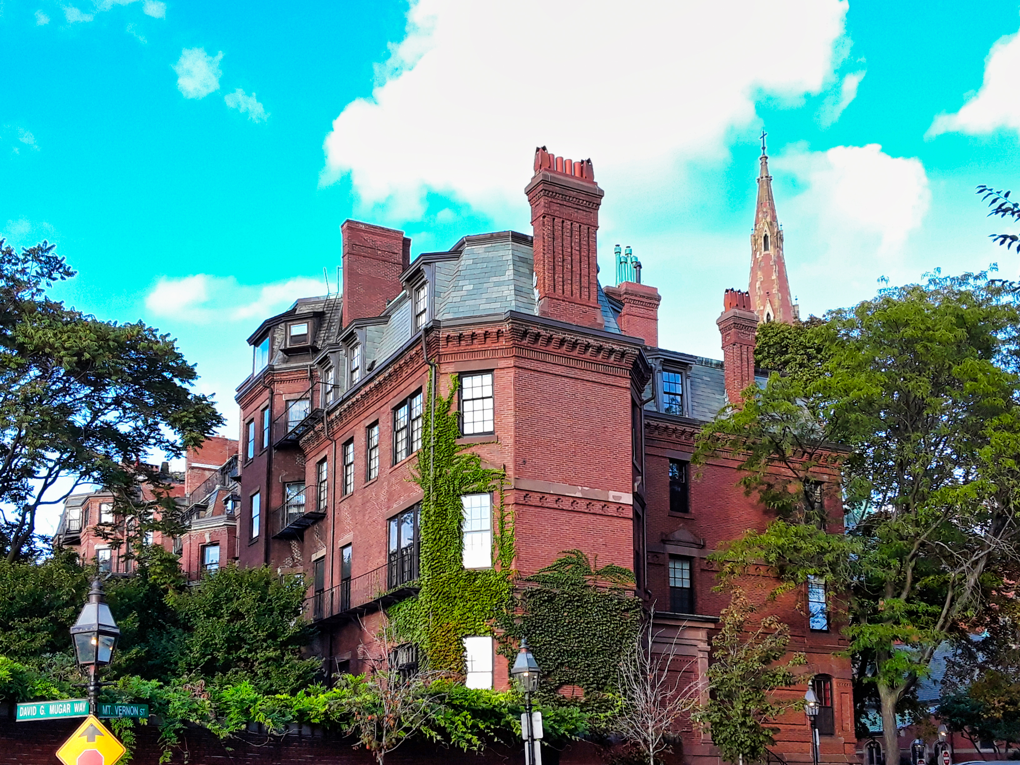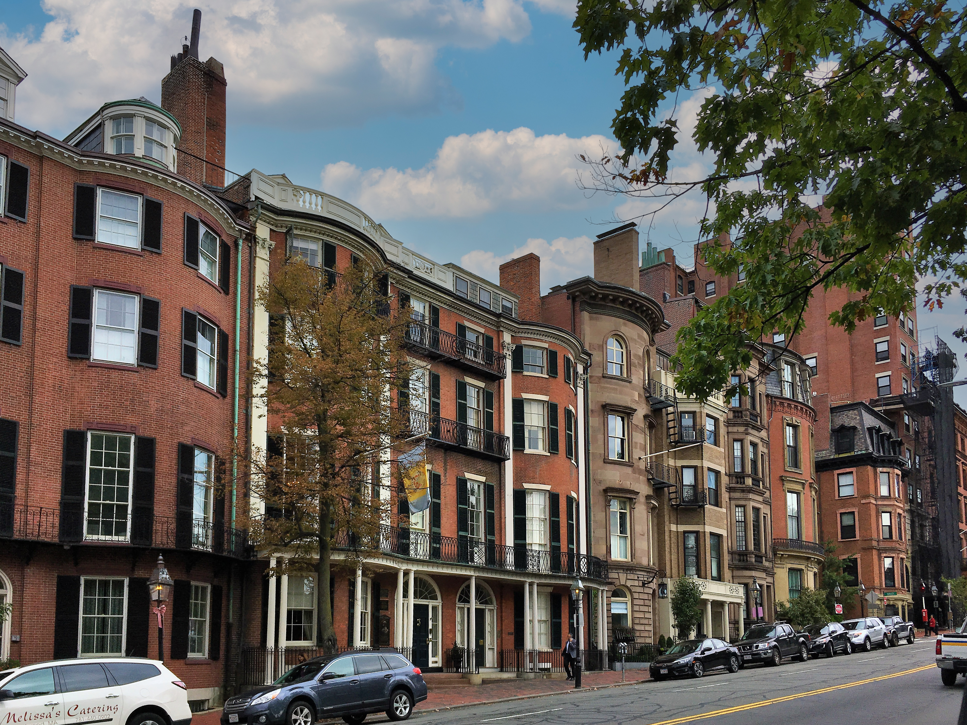 The famous Boston Brahmin neighborhood of red brick sidewalks, cobblestoned streets, elegant townhouses and gas street lamps.