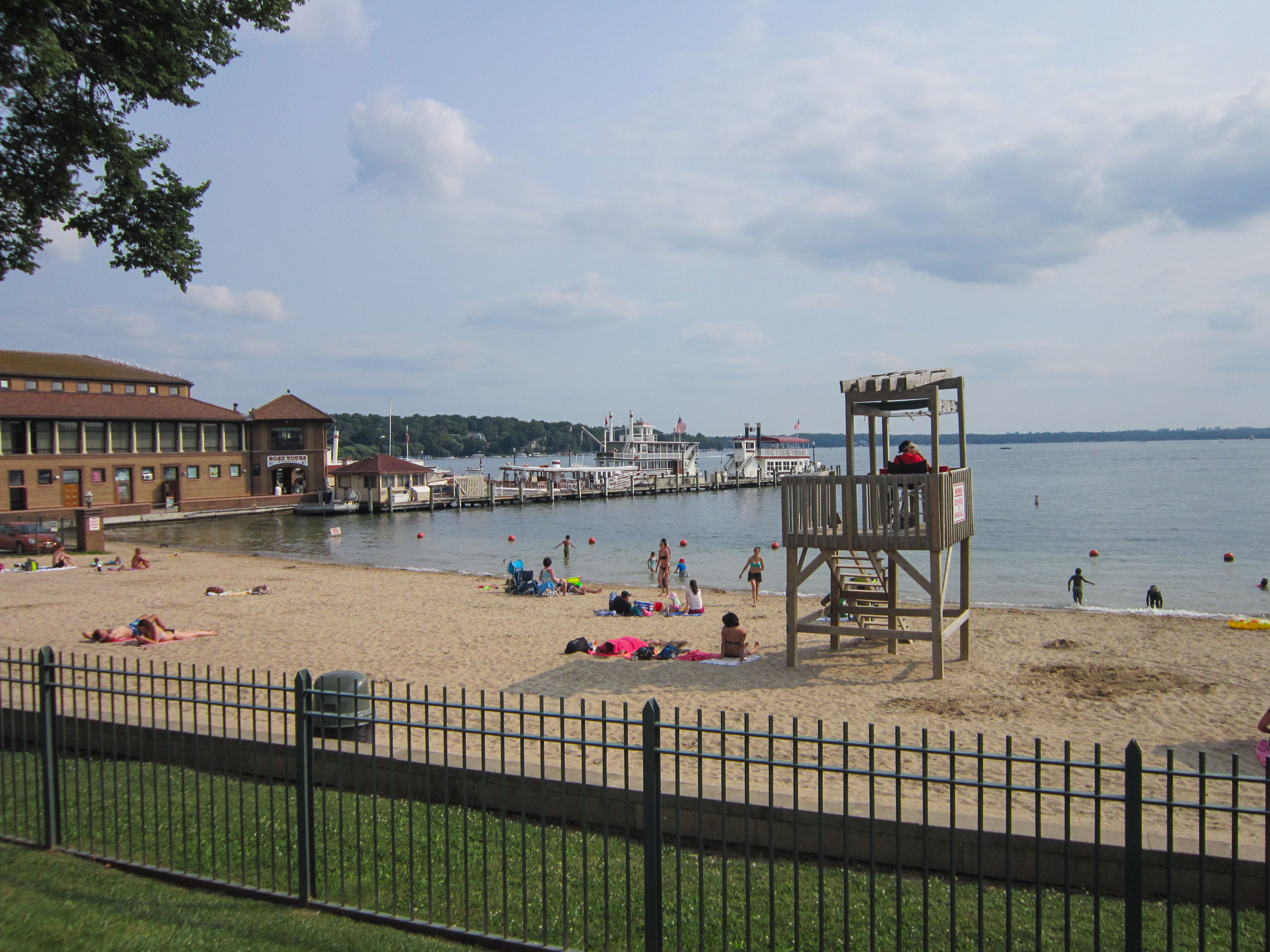 The city was named after Geneva, New York, as early settler John Brink found a similarity between the areas. The community was named Lake Geneva in order to avoid confusion with Geneva, Illinois, which is located nearby. The area gradually became a popular summer retreat because of the railroad access from Chicago
