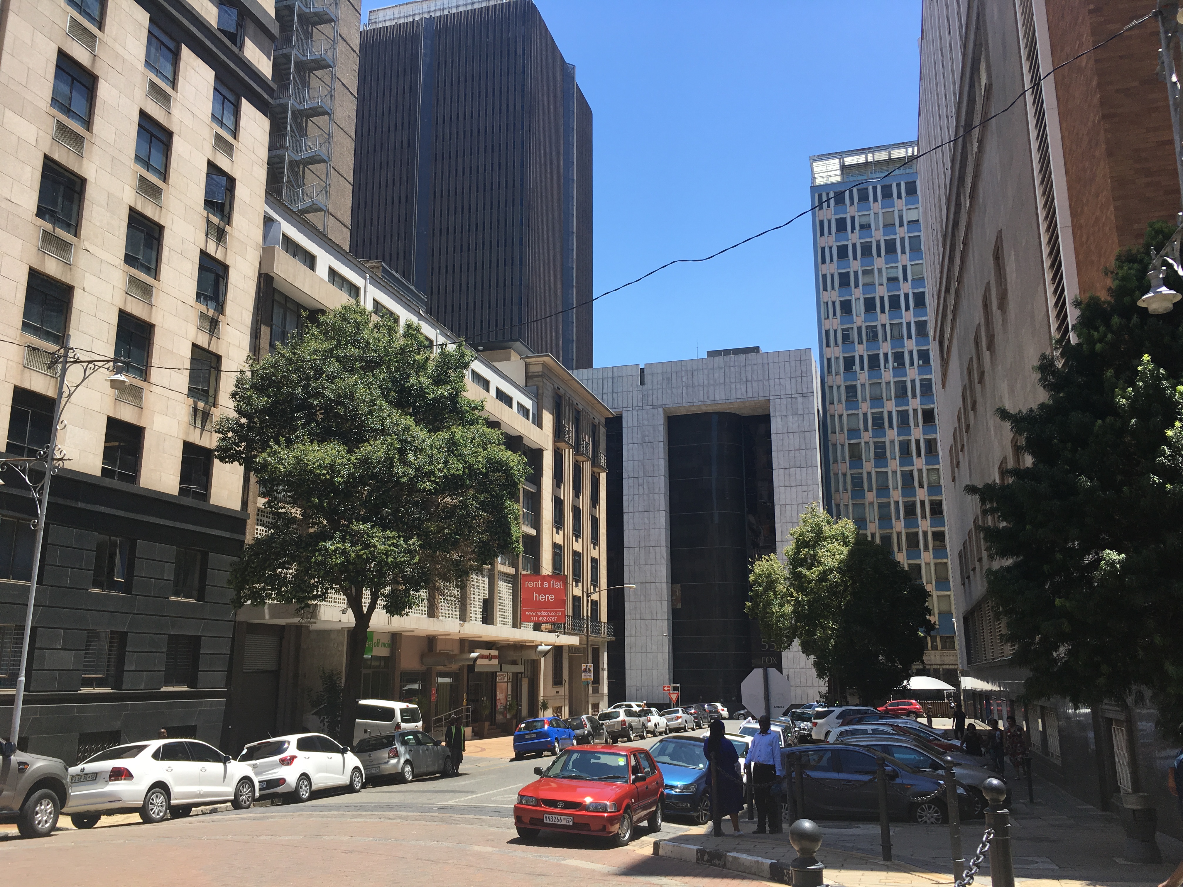 Central Johannesburg is laid out in a rectangular grid pattern with narrow streets dating back to the city's early history, although today they are lined with office towers that turn many of them into virtual canyons and have inspired the nickname ”Africa’s Manhattan.“